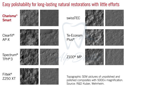 تکنولوژی تثبیت رنگ و پالیش پذیری بسیار آسان این کامپوزیت که کمپانی نام آن را Effortless Polishability گذاشته باعث استحکام بالا و کمترین تغییر رنگ در ترمیم ها می شود. این بدان معنی است که با کمترین زمان و کمترین زحمت به بهترین ترمیم های طبیعی با ماندگاری بالا خواهید رسید.